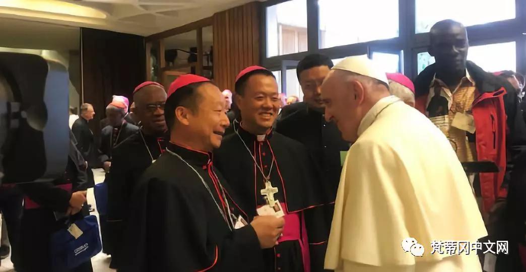 教宗方济各与两位中国主教的会面充满兄弟情谊和家庭氛围。在圣座与北京关于主教任命问题达成临时性协议后,若瑟·郭金才主教和洗者若翰·杨晓亭主教获得中国政府许可参加本届世界主教大会,主题为:“青年、信德和圣召分辨”。
